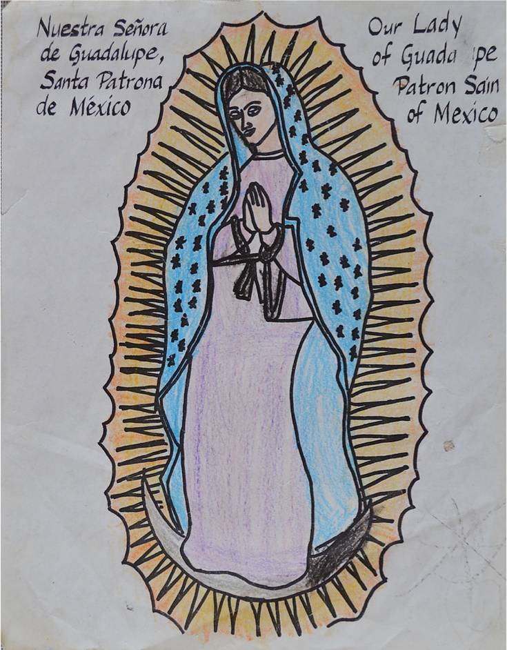 When I was in Kindergarten, my Spanish teacher introduced us to Our Lady of Guadalupe. I fell in love with the beauty of Mother Mary. In our lesson, my Spanish teacher passed out coloring pages of the image of Our Lady of Guadalupe. I carefully colored my page to, what I thought, perfection. I was so proud because I colored within the lines and I held true to the colors of the statue in our classroom. For over thirteen years, my coloring page of Our Lady was displayed in honor on our family refrigerator.